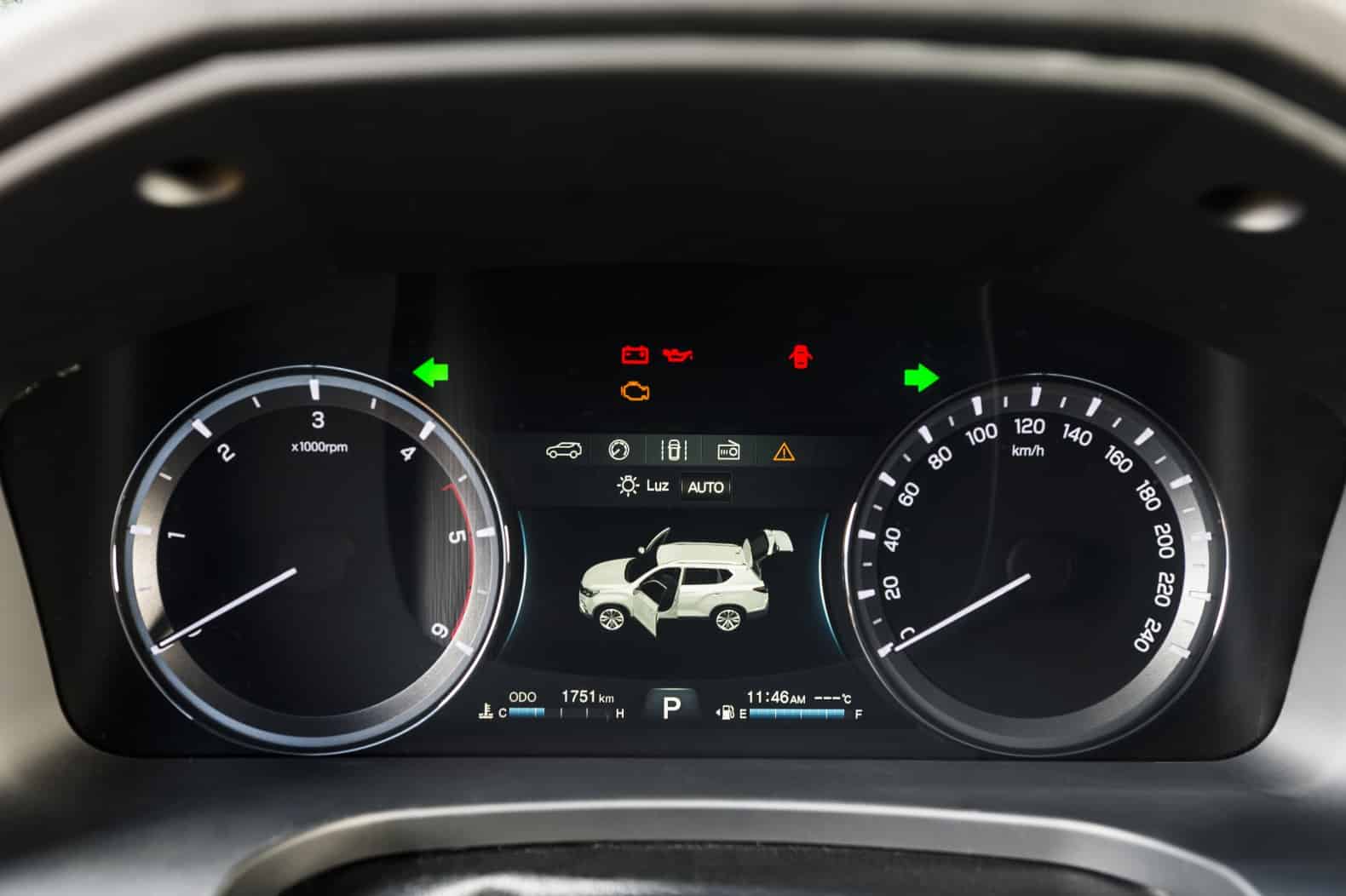La instrumentación del nuevo Rexton G4 nada tiene que ver con las anteriores. Salvo en el nivel de acceso, cuenta con una pantalla a color de siete pulgadas con mucha información (quizás para compensar todos estos años sin ordenador de viaje) sobre el vehículo, radio, consumos, asistencias, etc. También tiene lector de señales de tráfico pero no mantiene la limitación en la pantalla y solo aparece por tiempo limitado cuando la detecta.