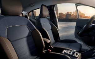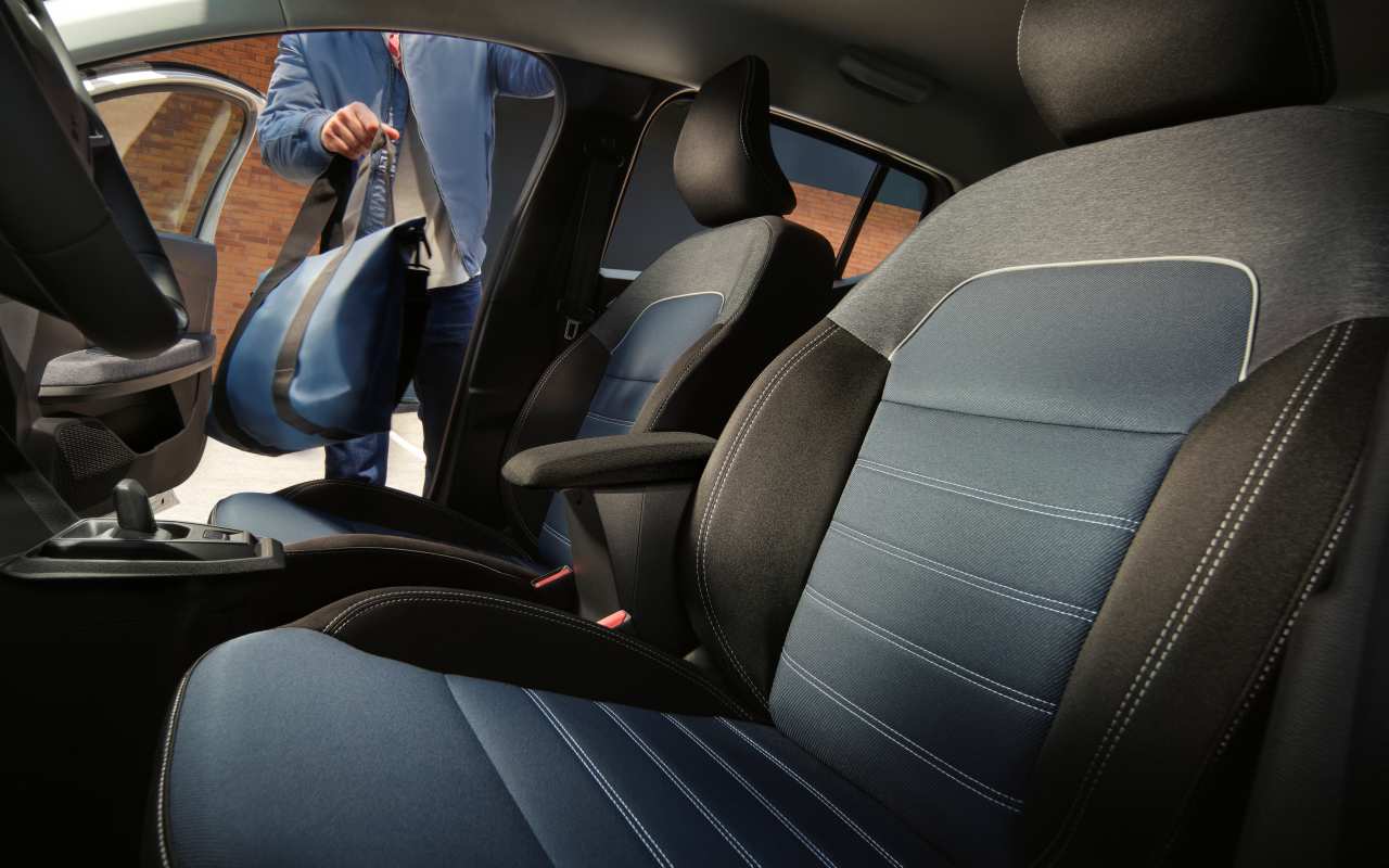 El interior de los nuevos modelos Dacia destaca por su diseño práctico y acogedor. Las molduras en “T” invertida reflejan la identidad exterior y se combinan con nuevos acabados en tela azul o tejido vaquero, según la versión.