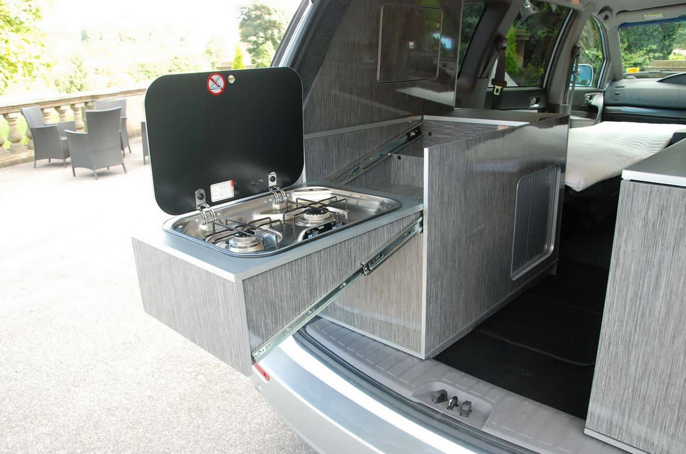El modelo también equipa un inodoro portátil, depósitos de agua dulce y de desecho de 25 litros, una nevera, una pequeña bombona de gas, un sistema de 12V, un toldo en el portón trasero, asientos traseros deslizables y giratorios y muchos compartimentos para almacenamiento.
