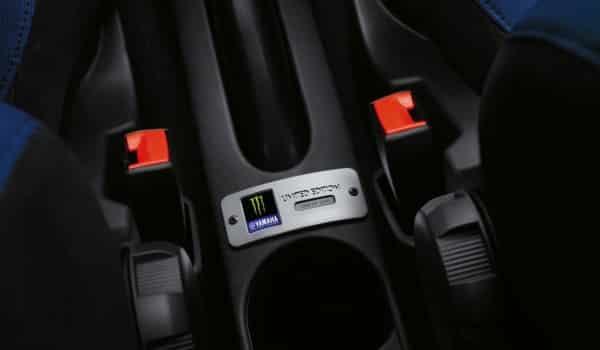 Está emparejado con una transmisión mecánica, pero puede equiparse con una transmisión secuencial robotizada Abarth con levas de cambio tras el volante. La serie especial también incluye una pantalla de bienvenida dedicada, que muestra el logotipo de Monster Energy Yamaha MotoGP en la pantalla en el arranque.