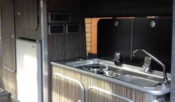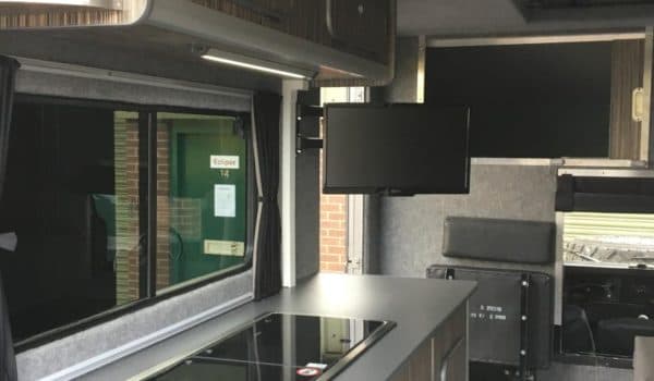 En el habitáculo podemos encontrar una cocina completa con fregadero (con su propia bomba de agua) y microondas; una batería, múltiples enchufes, abundantes huecos de almacenamiento, un calentador diésel (con un detector de monóxido de carbono incluido), paneles solares e incluso un baño portátil.