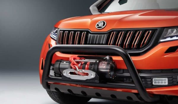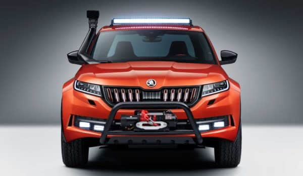 Respecto al Kodiaq en el que se basa, presenta nuevos paneles personalizados, un portón trasero realmente funcional, protecciones en la carrocería y en los bajos del vehículo, nuevos paragolpes y luces antiniebla remozadas, entre otros elementos. Además, refuerza sus capacidades off-road con una toma de aire de tipo snorkel, una barra de iluminación LED sobre el techo y un cabestrante frontal.