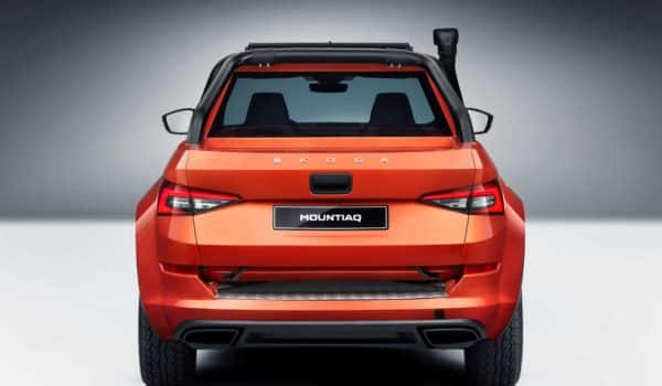 Como es habitual en este tipo de vehículos, el Škoda Mountiaq luce un robusto exterior que destaca por el llamativo color de carrocería Sunset Orange. Tiene una cabina simple con espacio para dos ocupantes, lo que permite una mayor capacidad de carga en la bañera, que es abierta, cuenta con iluminación y esconde un pequeño compartimento oculto para los objetos de valor.