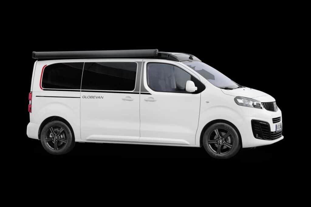 El nuevo Dethleffs Globevan se comercializa con un juego de sillas y una mesa plegable, lleva con oscuredecores de cabina y los cristales tintados. También llevan aire acondicionado con regulación independiente, calefacción estacionaria, batería auxiliar y dos pequeños depósitos de aguas limpias y grises.