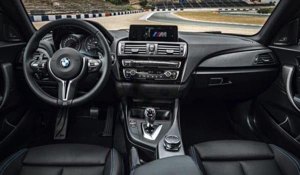 En la parte interior, pocas diferencias había entre el M240i y el M2. El M2 Coupé contaba con un cuadro de instrumentos de vehículos “M”, asientos con inscripción “M” en el tapizado, un volante con costuras especiales y, en caso de equipar el cambio DKG, una diseño de palanca y levas muy distinto al M240i.