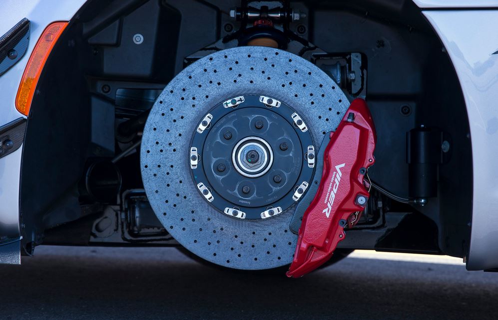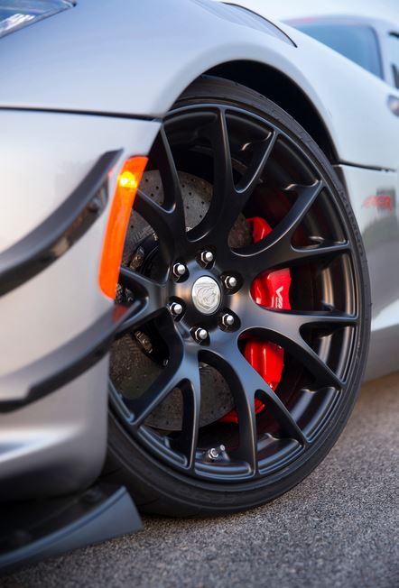 La pista es el mayor de los miedos del sistema de frenos. El Dodge Viper ACR cuenta con un nuevo sistema con discos carbocerámicos firmados por Brembo® que ofrecen un rendimiento óptimo de frenado. El sistema utiliza unos discos de 390 milímetros (15,4 pulgadas) en el eje delantero y unos de 360 milímetros (14,2 pulgadas) en el eje trasero. Los discos delanteros están accionados por pinzas de seis pistones mientras que los traseros cuentan con pinzas de cuatro pistones.