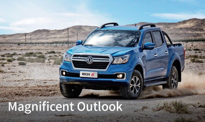 La longitud total del Rich 6 es de 5,31 metros y cuenta con una distancia entre ejes de 3,15 metros. Al menos en una primera etapa comercial solo llegarán a Europa las variantes con doble cabina y el interior con cinco asientos aunque podrían llegar si hay demanda versiones con cabina extendida con cuatro plazas, las dos traseras para uso ocasional.