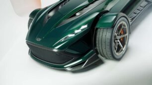 El kit aerodinámico opcional es desmontable y funcional de verdad. Nada de alerones decorativos, aquí hablamos de 90 kg de carga aerodinámica real a alta velocidad, sin arruinar la punta superior a 300 km/h.