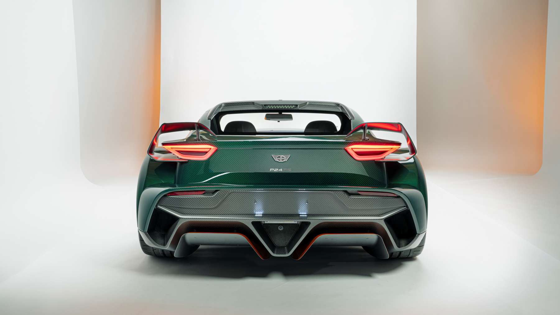 Uno de los detalles más gamberros del P24 RS son sus faros abatibles tipo “Aero Blades”, que se esconden cuando no se usan para reducir resistencia y salen solo cuando toca iluminar.