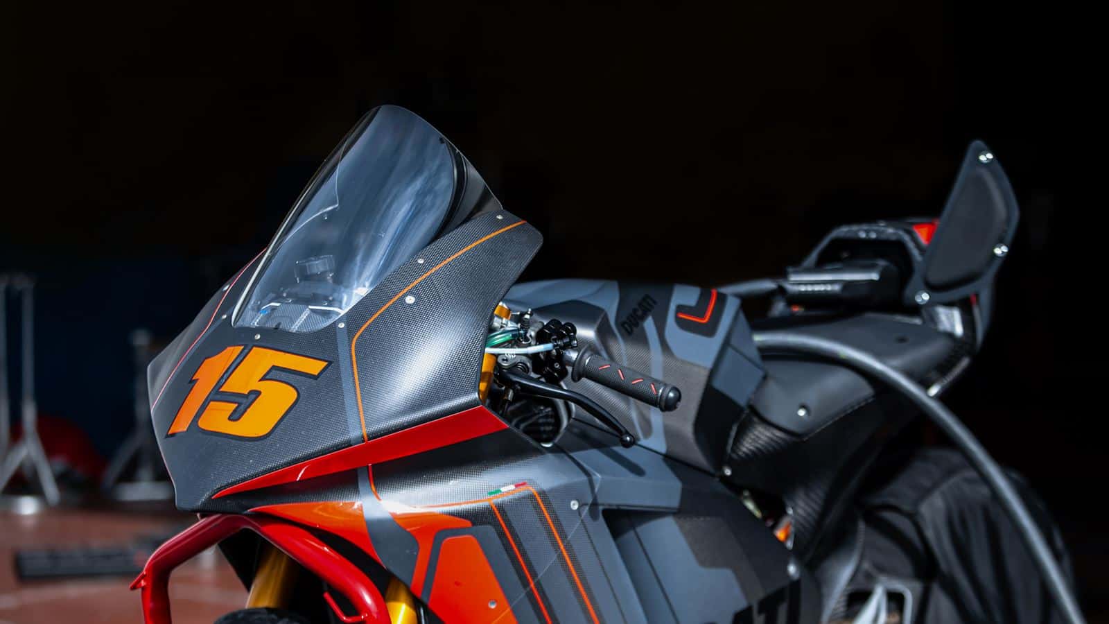 El inversor, con un peso reducido de 5 kg, es una unidad derivada de un modelo de alto rendimiento utilizada en carreras de coches para vehículos eléctricos, mientras que el motor (21 kg de peso y una velocidad de rotación máxima de 18.000 rpm) fue desarrollado por un socio siguiendo las especificaciones técnicas proporcionadas por Ducati. Todo el sistema se basa en un voltaje de 800 V.