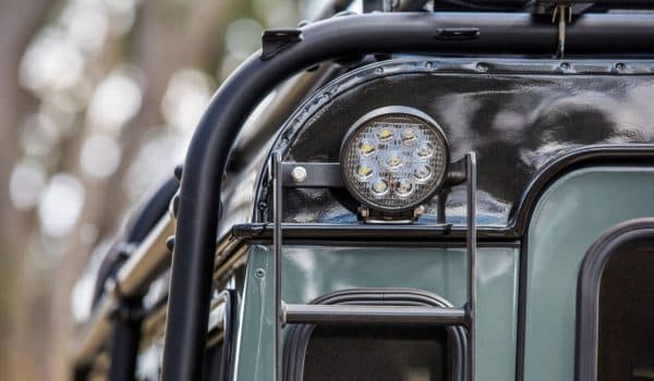 Por otro lado, tenemos al ‘Project Venture’ con un diseño más clásico y vintage gracias a su pintura de tono más tradicional ‘Keswick Green‘. Entre el generoso equipamiento que se ha añadido encontramos nuevas luces LED sobre el techo, una caja portaequipaje de color negro, un cabrestante eléctrico en el paragolpes delantero o un juego de llantas de 18 pulgadas y color negro calzando unos neumáticos todoterreno. En su interior, de nuevo, encontramos una exclusiva tapicería de cuero y acabados en fibra de carbono para obtener un toque más racing.