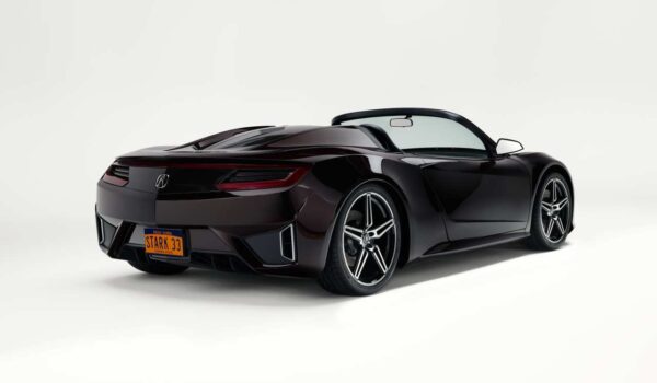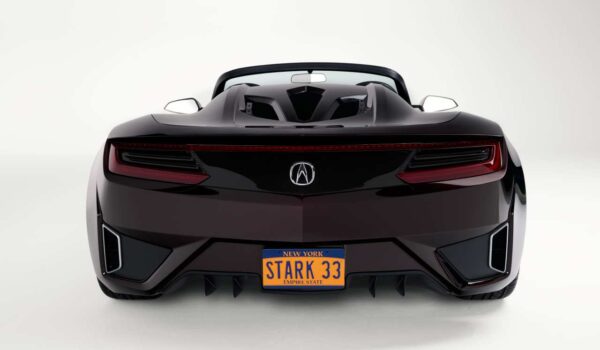 El Acura NSX Roadster fue diseñado exclusivamente para Los Vengadores por el equipo del Acura Design Studio de Los Ángeles, liderado por Dave Marek, y está inspirado en el NSX Concept de segunda generación, presentado en el Salón de Detroit 2012. El vehículo mantiene todos los detalles que lució en pantalla hace 13 años, incluyendo la icónica matrícula “Stark 33” que hacía referencia a Tony Stark, alias Iron Man.