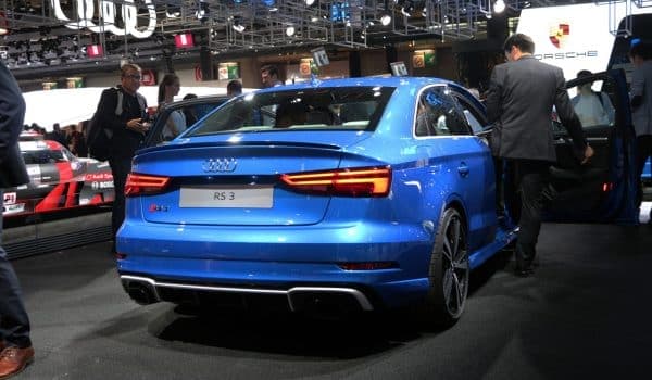 Incluso sin estar arrancado, el nuevo Audi RS3 Sedán es capaz de atraer todas las miradas. La unidad expuesta en París lógicamente no nos ha conquistado por su bramido (están siempre apagados) pero el paquete deportivo hace de esta berlina un vehículo realmente apetecible, generando «pensamientos impuros» entre los compañeros de prensa.