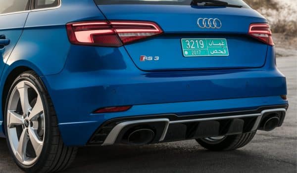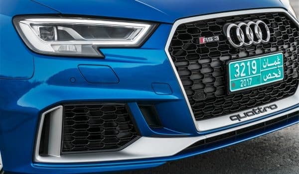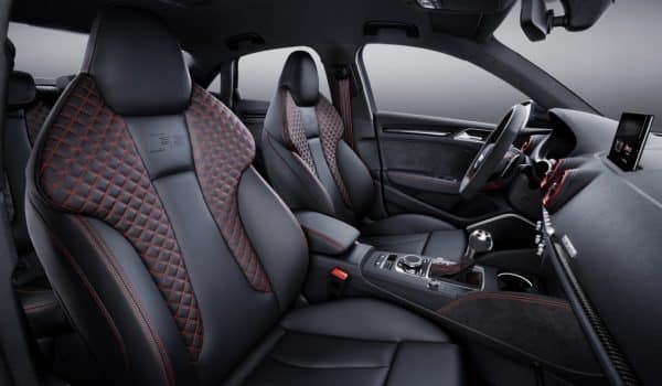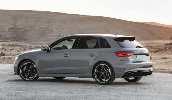 En España todos los RS3 incluyen de serie el paquete deportivo exterior, llantas de aleación de 19 pulgadas, colas de escape cromadas, faros LED para todas las funciones, alerta pre-colisión, detector de peatones, espejos retrovisores plegables, sensor de lluvia, encendido automático de luces, espejo interior fotosensible y volante multifunción en piel.