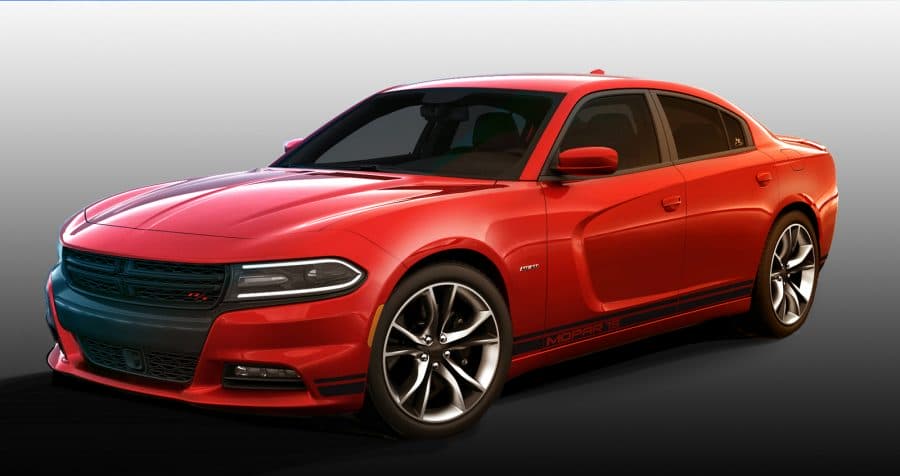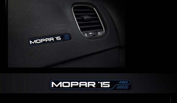 Exteriormente los Charger R/T Mopar ’15 se reconocen por los adhesivos decorativos laterales en color negro con el nombre de la edición, conservando las llantas de aleación de 20 pulgadas en color gris, el alerón sobre la tapa del maletero y la parrilla frontal con la zona central del paragolples pintada en negro.