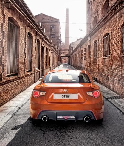 Este deportivo compacto 2+2 de Toyota, es un vehículo totalmente orientado al conductor. Basado en una plataforma completamente nueva, el GT86 cuenta con una carrocería baja y muy aerodinámica acoplada a los puntos principales de diseño. Con 4.240 mm de largo, 1.775 mm de ancho y tan solo 1.285 mm de alto y una distancia entre ejes de 2.570 mm. El nuevo GT86 se ha convertido en el vehículo deportivo de cuatro plazas más compacto del mundo.