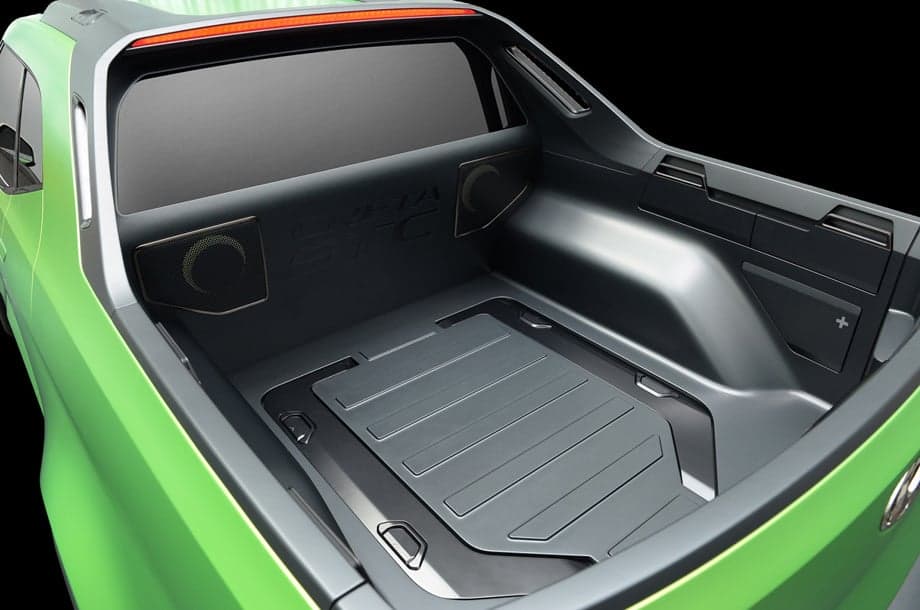 El concepto muestra un sistema de puertas convencionales más dos adicionales con apertura «suicida» que no sabemos si llegará así en el modelo de producción. En cuanto a la caja, posee una longitud de 1,3 metros y una altura de medio metro, más que suficiente para poder llevar un buen número de cosas.