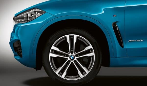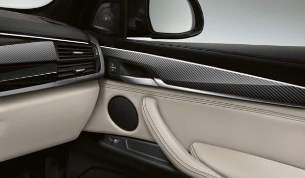 Para las molduras interiores se ha optado por la fibra de carbono, mientras que para las llantas pueden elegirse varios diseños de entre 20 pulgadas (de serie) y 21 pulgadas (en opción con funcionamiento en caso de avería de los neumáticos). Esta disponible para cualquier motorización de la gama, salvo los BMW X6 M50d y X6 M, lógicamente.