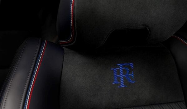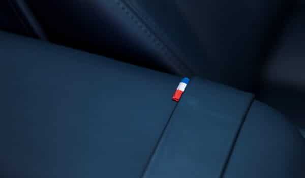 - Tapicería de cuero personalizada, ensamblada por los talleres de Renault, con costuras en azul republicano y detalles como el monograma «RF» iluminado.