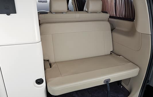 Las versiones camper reciben las modificaciones habituales en este tipo de vehículos, incluido el techo retráctil que esconde una cama doble. También se ha incluido una práctica cocina, una nevera y fregadero, depósito de agua, calefacción independiente, mesa plegable, varios armarios y cajones porta-objetos, etc.