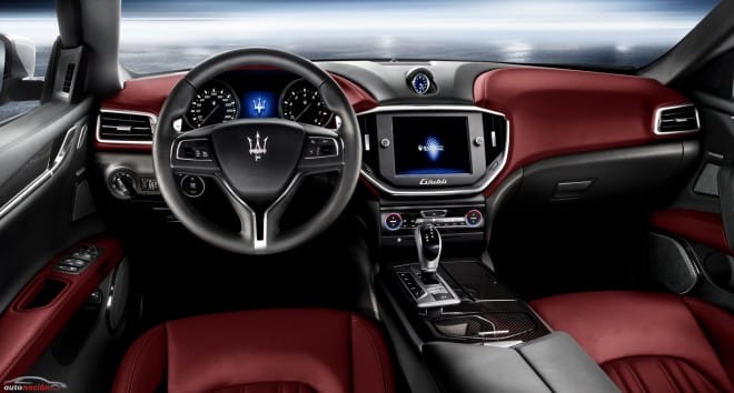 El interior del Ghibli se distingue del Quattroporte por un salpicadero de diseño propio que ofrece la imagen deportiva y juvenil que demanda el cliente pero sin con ello perder el lujo que se espera de un Maserati. El Ghibli ofrece un diseño marcadamente deportivo combinado con la amplitud del habitáculo característica de una berlina ejecutiva.