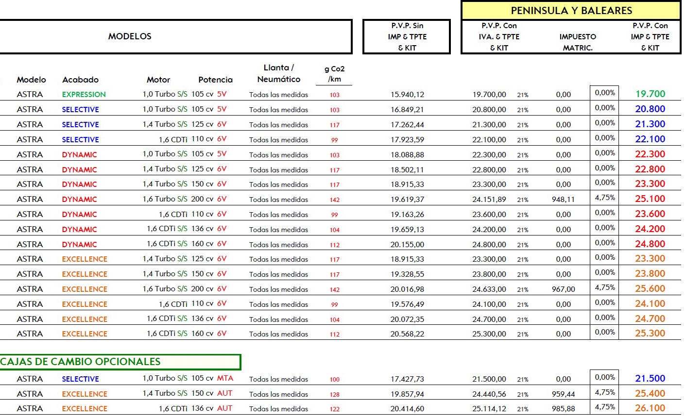 Los precios recomendados de la nueva Astra Sports Tourer son los siguientes: