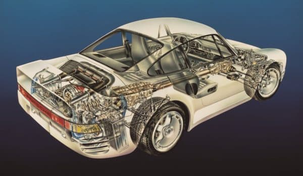 Al 959 le debemos muchas cosas. Para empezar, fue el primer automóvil deportivo de sus características y su época en hacer uso de un sistema de tracción a las cuatro ruedas con embrague multidisco y reparto de par -40% delante y 60% detras-. Además de este avance, el 959 sentó las bases para crear el Porsche 911 Carrera 4 y llevó a Porsche a incluir la tracción a las cuatro ruedas en todos los Porsche 911 Turbo desde los 993. Por último, este sistema de tracción y su caja de cambios ligeramente retocada dieron alas al victorioso Porsche 953 en el rally París-Dakar de 1984.