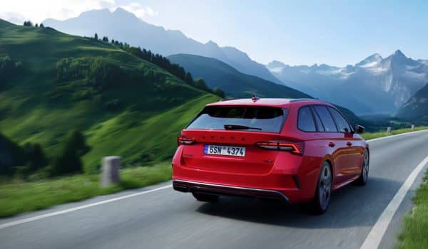 Las ventanillas laterales traseras y la luneta trasera están tintadas («Sunset»). Las llantas de aleación Comet negras y aerodinámicamente optimizadas de 18 pulgadas y las nuevas llantas de aleación Elias cepilladas opcionales de 19 pulgadas en color plata o antracita son exclusivas del Octavia RS.
