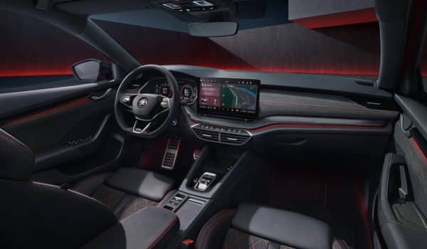 Entre las mejoras encontramos la incorporación de los faros Matrix LED de serie que también llega con una nueva firma lumínica y unos nuevos paragolpes delantero y trasero. El modelo ahora incluye luces traseras LED con intermitentes animados y la función animada Coming/Leaving Home. Además, vienen con un nuevo diseño del logotipo RS, que puede verse tanto en el emblema exterior como en el interior. En el típico estilo RS, el paragolpes trasero presenta una tira reflectante roja que se extiende por toda la anchura del vehículo.