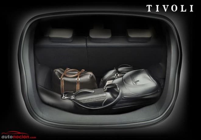 Respecto al maletero, el Tivoli ofrecerá un espacio de carga muy competitivo que destaca por sus 423 litros con una anchura suficiente para poder transportar hasta 3 bolsas de golf.