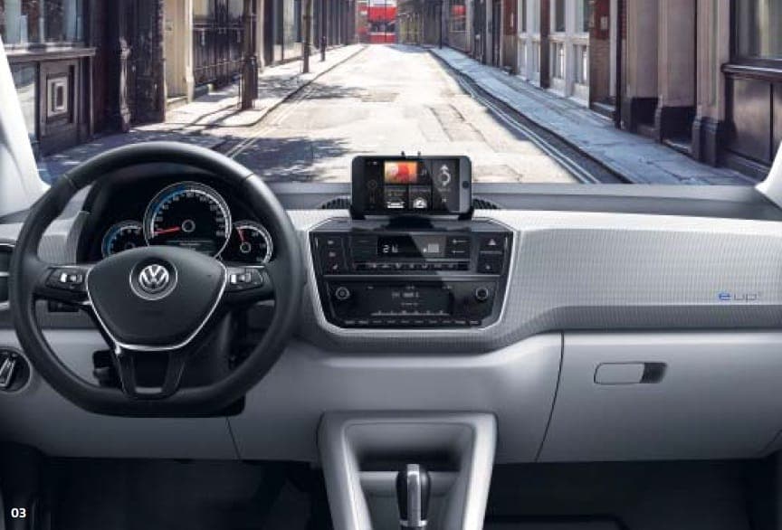 En el interior el salpicadero se ha actualizado con los nuevos sistemas de sonido que pueden tener pantalla a color, el nuevo anclaje para smartphones, y la misma instrumentación vista en el Beetle pero adaptada al motor eléctrico. En equipamiento recibe el encendido automático de luces, cámara posterior y el sensor de lluvia.