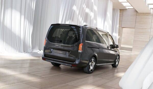 En la parte trasera, el parachoques y las luces LED de nuevo diseño garantizan una apariencia inconfundible. El EQV, Clase V y Clase V Marco Polo también tiene una nueva moldura cromada con las letras Mercedes-Benz en la parte trasera.