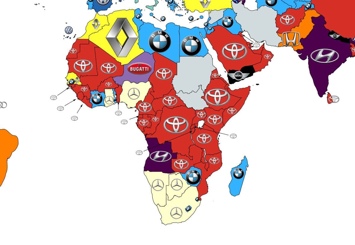 La marca que encabeza la lista en el mayor número de países es Toyota -74 países- mientras que el segundo puesto fue para BMW con un total de 51 países. El tercer puesto ha sido para Hyundai con 17 países.