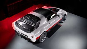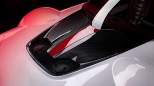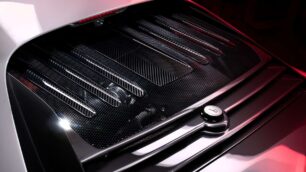 Gracias a la carrocería de fibra de carbono, el peso se queda en 1.057 kg, lo mismo que muchos utilitarios actuales… pero con casi 500 CV. Además, es compacto, bajísimo y con una postura que grita “¡deportivo!” desde cualquier ángulo.