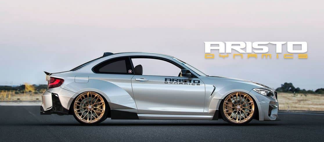 Prueba de todo esto es el trabajo que nos ha mostrado Aristo Dynamics. El preparador ha ensanchado la ya de por sí agresiva figura del BMW M2 Coupé con un kit de carrocería hecho presumiblemente con fibra de carbono.