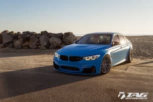 A esto también hay que añadirle nuevas tomas de aire, un sistema de escape con salidas de 102 mm o unos serie de reajustes en su ECU para poder exprimir al máximo su motor 3.0 M TwinPower Turbo. También se han equipado unos frenos carbocerámicos que incorporan unas pinzas de freno en el mismo acabado de color ‘Riviera Blue’, a juego con el resto del conjunto. Para completar este M3 también encontramos una suspensión KW coilover ajustable y unas llantas HRE que miden 20×10 en la parte delantera y 20×12 en la parte trasera.