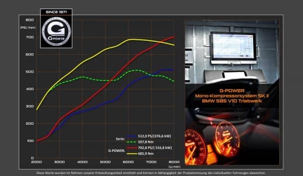 Gracias a un sobrealimentador desarrollado por G-Power han conseguido optimizar al máximo su motor V10 para extraer ahora 700 caballos de potencia y 680 Nm de par. Una actualización que está disponible en las versiones E60 y E61, la versión familiar del BMW M5 que vemos en las imágenes. Desgraciadamente G-Power no ha desvelado aún las cifras que presenta el modelo tras implantar este paquete de mejoras, pero sabemos que los costes del kit completo ascienden hasta los 16.838 euros, a lo que habría que sumar además la instalación.