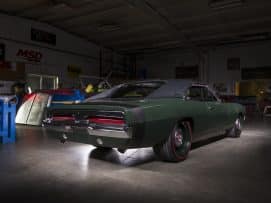 Entre otros, sus faldones laterales se han alargado mientras que los pasos de rueda trasera se han bajado y extendido para crear un aspecto más deportivo. Además se ha rediseñado el parachoques delantero y se han equipado unos neumáticos Michelin con dimensiones 285/35 R19 y 345/35 R19 que mejorarán notablemente el agarre del muscle car americano. En su carrocería se ha optado por un acabado de pintura verde «Greener On The Other Side» con acentos cromados que le dan un toque clásico pero actual, una mezcla que no le sienta nada mal a este clásico. Tampoco su nuevo juego de llantas HRE de 19 pulgadas que esconden en su interior unos frenos Baer de seis pistones.