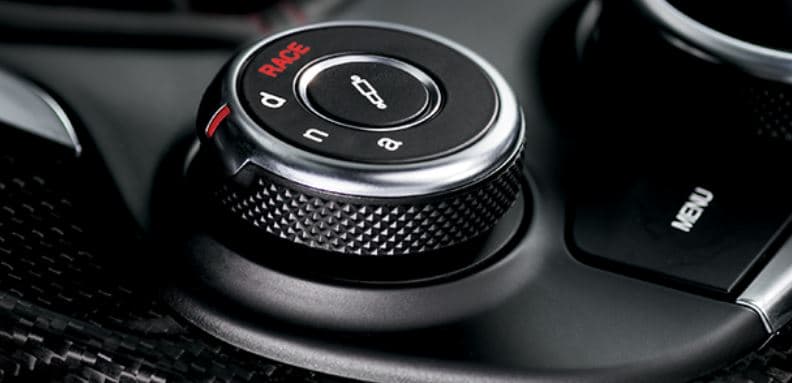 El nuevo selector Alfa DNA Pro actúa sobre el Chassis Domain Control. Modifica instantáneamente el comportamiento del vehículo en función de la modalidad de conducción seleccionada: