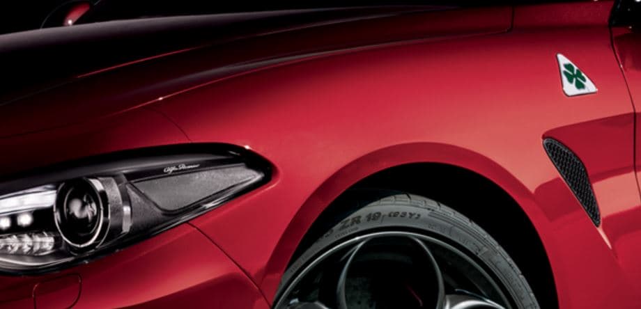Entre los exteriores destacan las llantas Quadrifoglio de aluminio de 19”, los faros bixenón, los 4 escapes cromados traseros, las tomas de aire funcionales en el capó y en los laterales, la calandra deportiva y los elementos aerodinámicos de carbono.