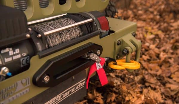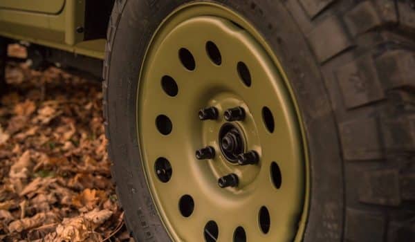 Al mismo tiempo, tampoco faltan elementos de equipamiento tan característicos como los paragolpes Rugged Ridge con un cabrestante motorizado, ruedas de acero del mismo color verde oliva que la carrocería calzadas con neumáticos de medidas 265/70 R17, una cubierta de la rueda posterior reforzada o un sistema de escape personalizado.