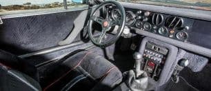 Todas las unidades que se fabricaron fueron pintadas de este mismo color, un rojo que le da ese aire deportivo y clásico que nunca pasa de moda. Este ejemplar además fue repintado tras la minuciosa restauración por lo que pasó recientemente, además su interior también ha recuperado las especificaciones originales con los asientos tapizados de nuevo en esa tela negra ‘Corduroy’. Bajo el capó permanece su bloque de 4.0 cilindros situado en el medio del chasis junto con una caja de cambios de cinco velocidades.