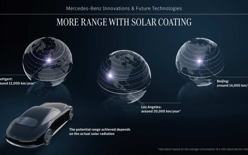 Mercedes-Benz investiga un recubrimiento solar fotovoltaico capaz de generar energía incluso cuando el vehículo está apagado. Este innovador material, sin silicio ni tierras raras, puede aumentar la autonomía anual hasta en 12.000 km bajo condiciones ideales.