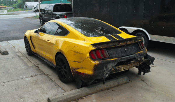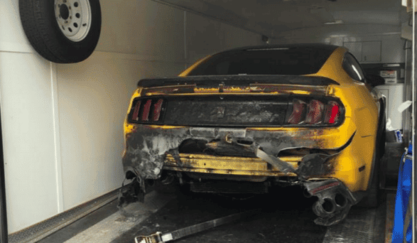 Joe «Hipo Joe» podría decir perfectamente que ha vuelto a nacer, y es que después de que empezara a arder su Ford Mustang GT350 a nada menos que 160km/h en el circuito de Roebling Road -situado en el estado de Georgia- es realmente asombroso que haya salido sin apenas algún rasguño y con el coche prácticamente intacto salvo la parte trasera que ha quedado así…
