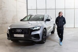 Raphael Varane y Vinícius Junior demuestran su pasión por la sostenibilidad y ambos han escogido para esta temporada el nuevo Audi e-tron Sportback 55 quattro. El defensa francés ya pudo comprobar el pasado año todas las ventajas de la movilidad eléctrica conduciendo un e-tron quattro, mientras que para Vinícius será una nueva experiencia, tras haberse movido los últimos meses a bordo de un A7 Sportback. El SUV eléctrico con carrocería coupé, en su versión 55 quattro, ofrece una potencia máxima de 300 kW (408 CV) en modo boost, y una autonomía de hasta 446 km.