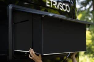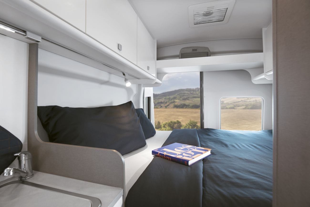 La mayor novedad de este Etrusco camper de cara a la próxima temporada está en el sistema xFlip que permite disponer de una superficie de descanso en la zona posterior de hasta 2,29 metros, presumiendo de una de las camas más generosas del mercado. Cuando no está en uso se puede bloquear una extensión de 37 cm para dejar más espacio habitable durante el día.