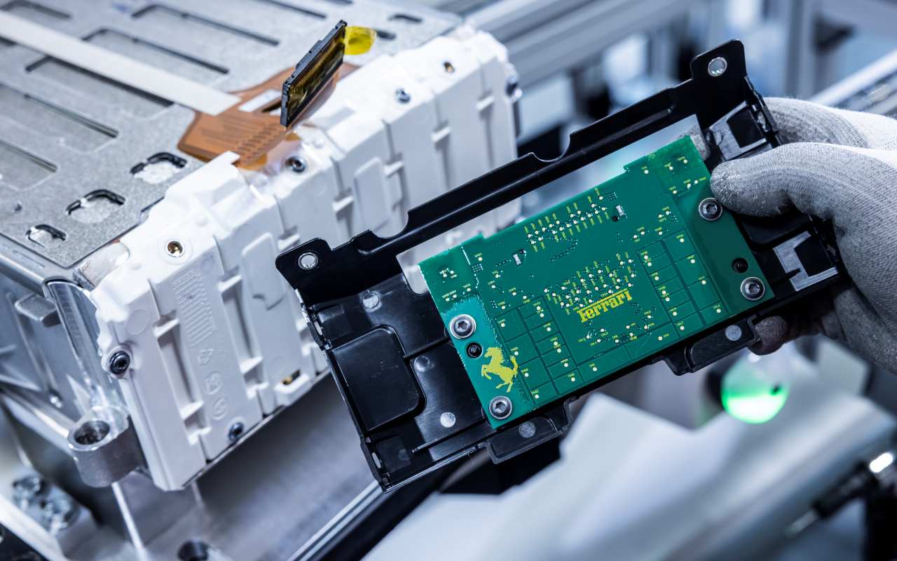 La batería, desarrollada íntegramente en Maranello, tiene 122 kWh de capacidad y una densidad energética de 195 Wh/kg, la más alta del sector.