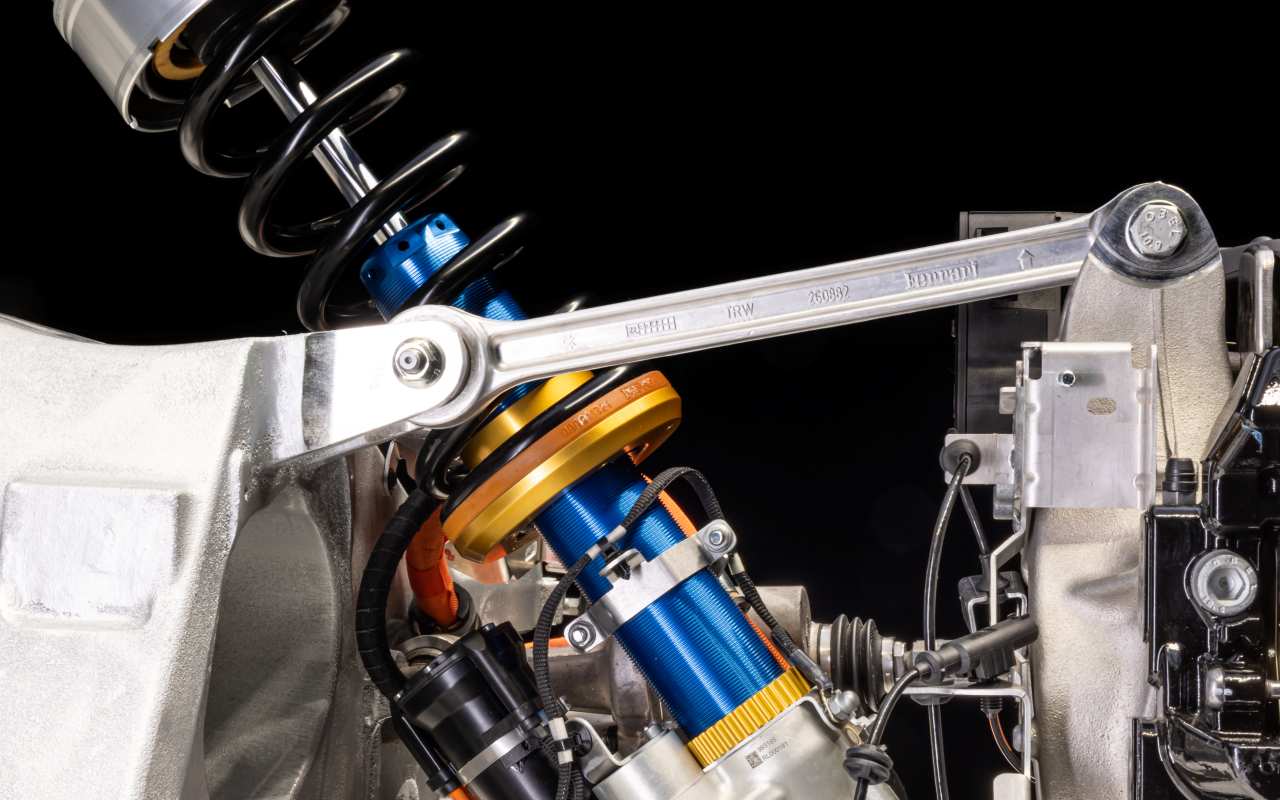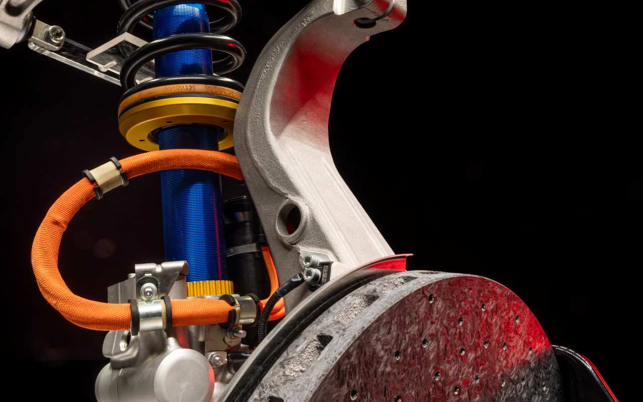 El Ferrari Elettrica utiliza la tercera generación de suspensión activa de 48V, capaz de controlar de forma independiente cada rueda y adaptar la rigidez en tiempo real.