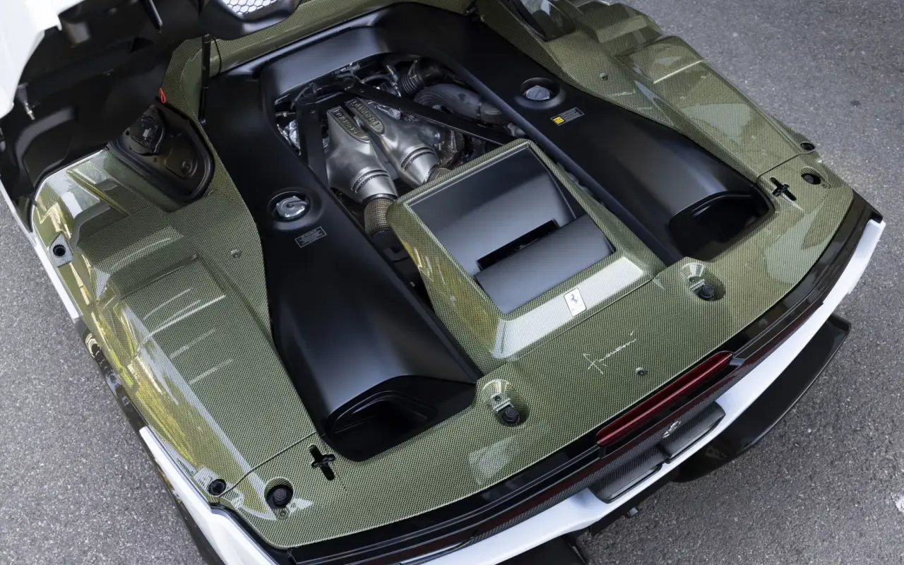 En la parte trasera, el SC40 exhibe un motor V6 visible a través de rejillas en Lexanahumado, junto a escapes centrales fabricados mediante impresión 3D, revestidos en titanio y carbono. Todo el conjunto resalta el carácter técnico e innovador que define a Ferrari.