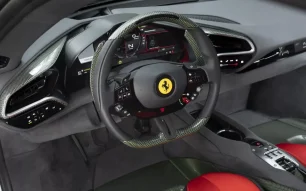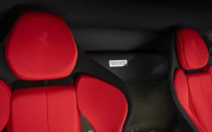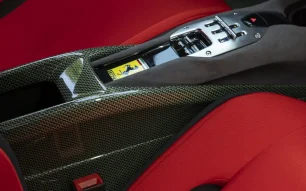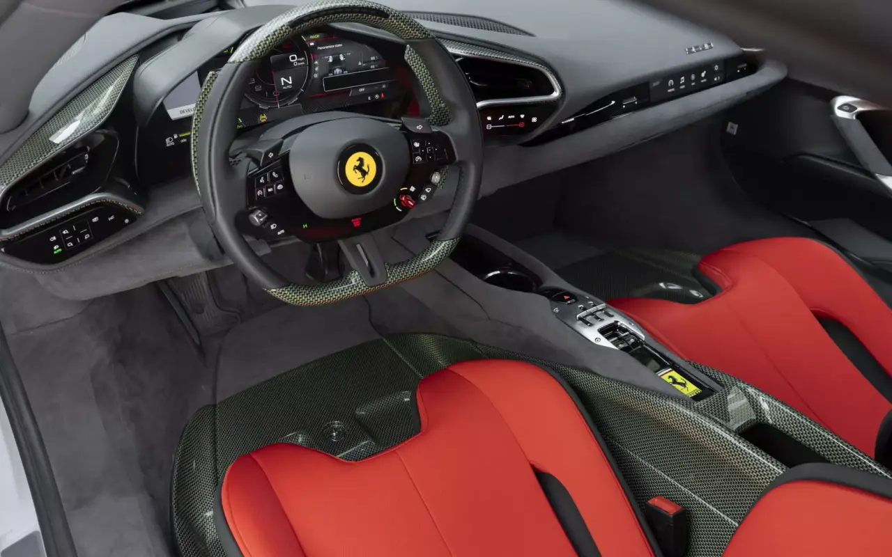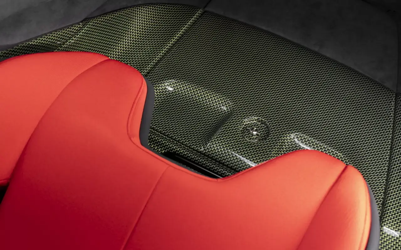 El habitáculo del Ferrari SC40 combina kevlar, fibra de carbono y Alcantara Charcoal, evocando el espíritu del F40 pero con un enfoque contemporáneo. Los asientos presentan el Cavallino Rampante bordado y detalles en tejido Jacquard rojo, reforzando la identidad única del vehículo. Cada elemento interior ha sido diseñado para fusionar lujo, deportividad y exclusividad.